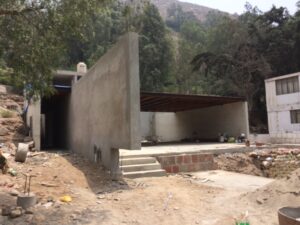 Como el terreno se encuentra sobre la ladera de un cerro, se decidió responder al encargo con una estrategia de implantación escalonada en la pendiente, en la que el programa de vivienda se reparte sobre 3 terrazas bien definidas, favoreciendo las vistas e iluminación, y remarcando la progresión ascendente de lo social a lo privado.