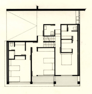 L’idée de la coupe generatrice du projet se manifeste aussi avec les deux toitures en pentes inégales decalées pour que la séparation entre elles permettent à la lumière naturelle d’entrer et de ventiler la maison par le toit. Les ouvertures dans les façades sont orientées en profondeur pour protéger l’intérieur de l’exposition au soleil et aux pluies sans réduire les points de vue, la lumière et les brises naturelles.