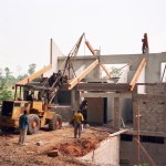 The aggregates, sand, tiles, bricks, structural wood and carpentry were all extracted and produced on site.