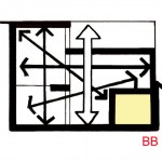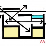 La stratégie pour la conception de la maison part d’une Figure qui intègre, à travers un mouvement continu et en torsion, les niveaux et les espaces de la maison, et ainsi résout les exigences imposées par le terrain en pente sur la colline. Pour obtenir la continuité spatiale à partir des fonctions assignées aux différents niveaux, les espaces s’entrelacent à travers des transparences, en générant les dilatations spatiales qui sont entrecroisées et équilibrent la directionnalité imposée par le lot mitoyen.